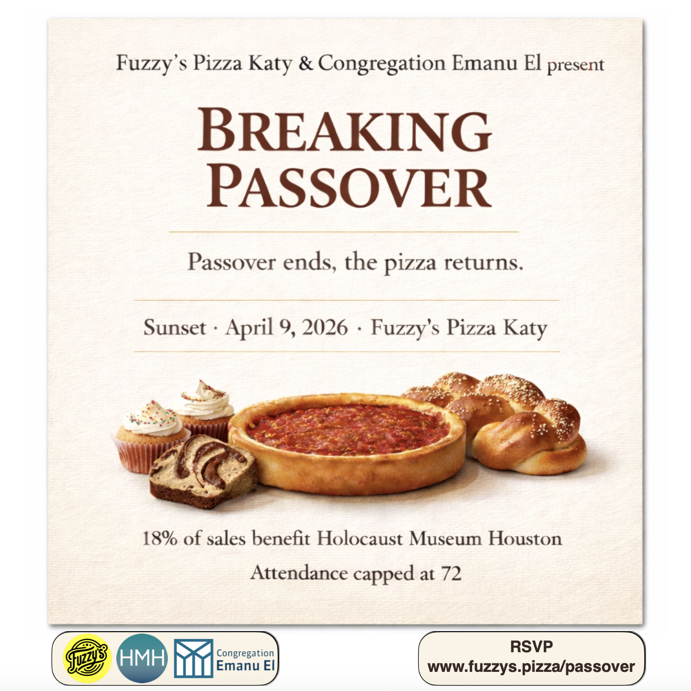 Fuzzy’s Pizza Katy x Congregation Emanu El presents